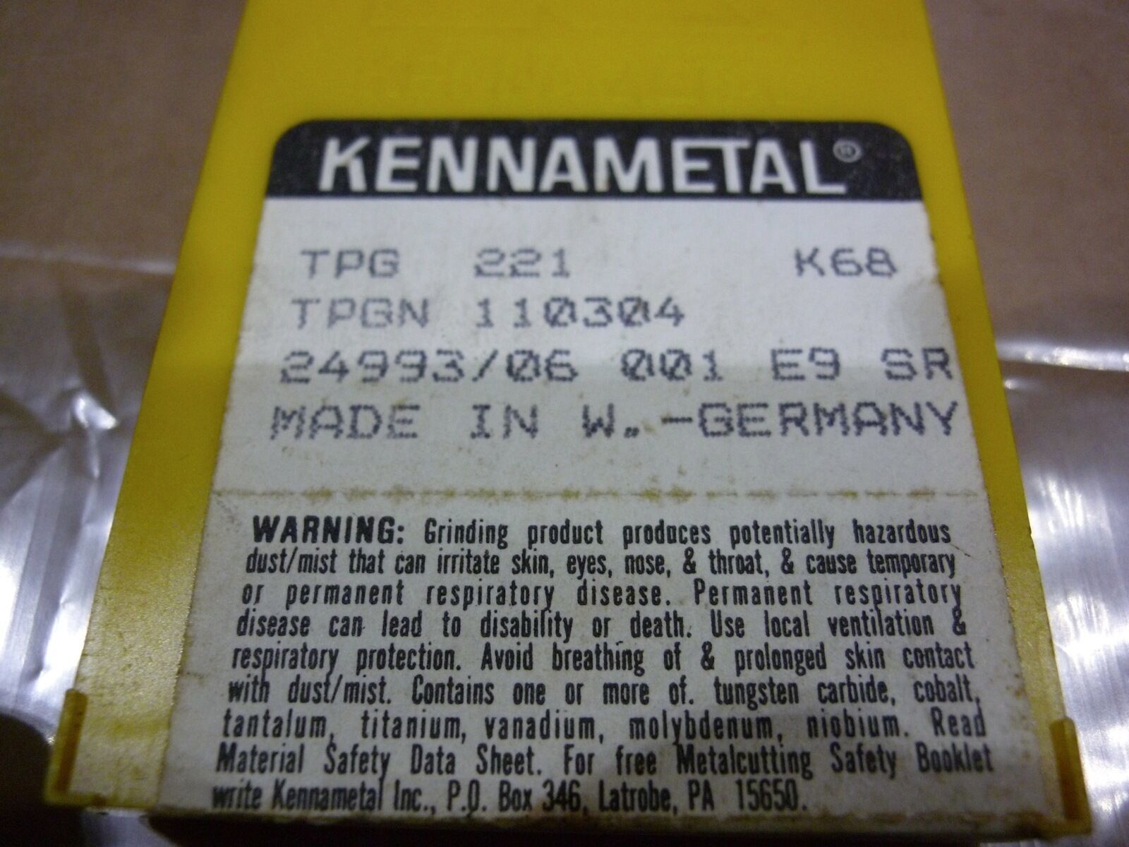 10 in a set, KENNAMETAL TPG 221 K68 TPGN 110304 24993 06 001 E9 SR