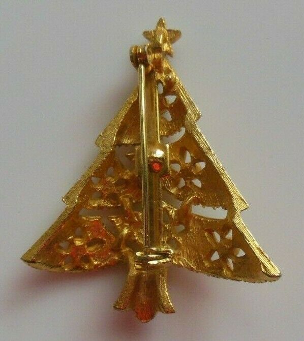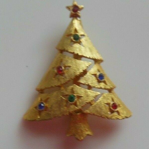 Vintage Christmas Tree Red, Green, Blue Rhinestone Brooch