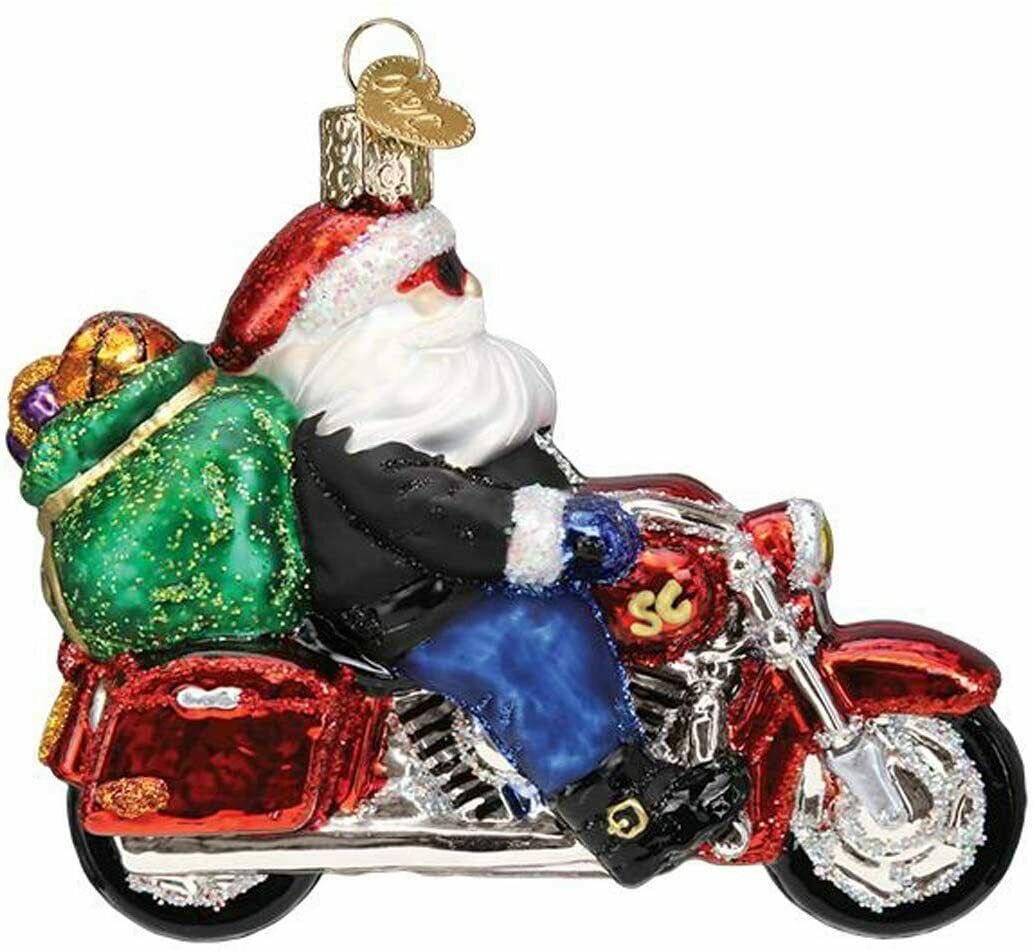BRAND NEW with Tags OLD WORLD CHRISTMAS BIKER SANTA BLOWN GLASS CHRISTMAS ORNAMENT 40313