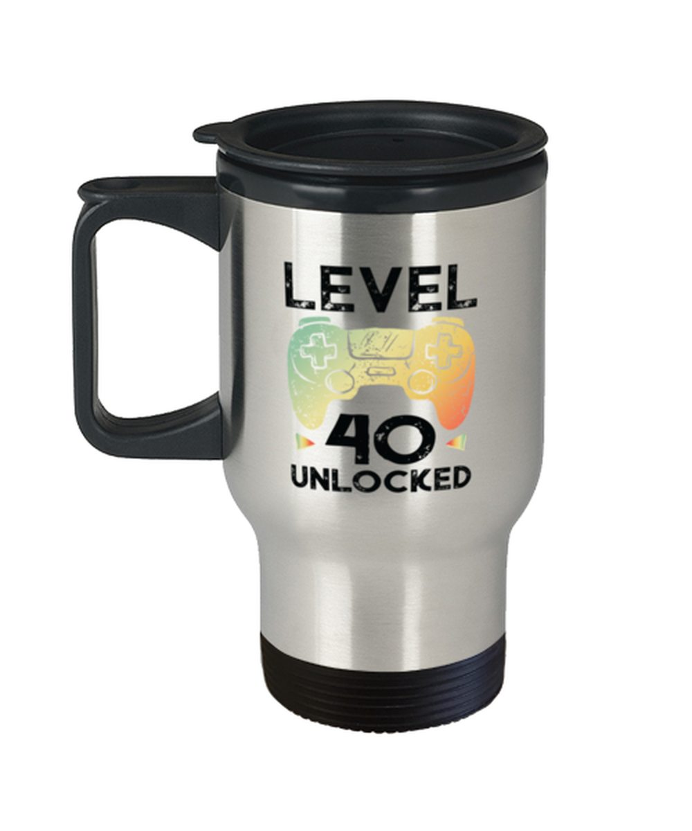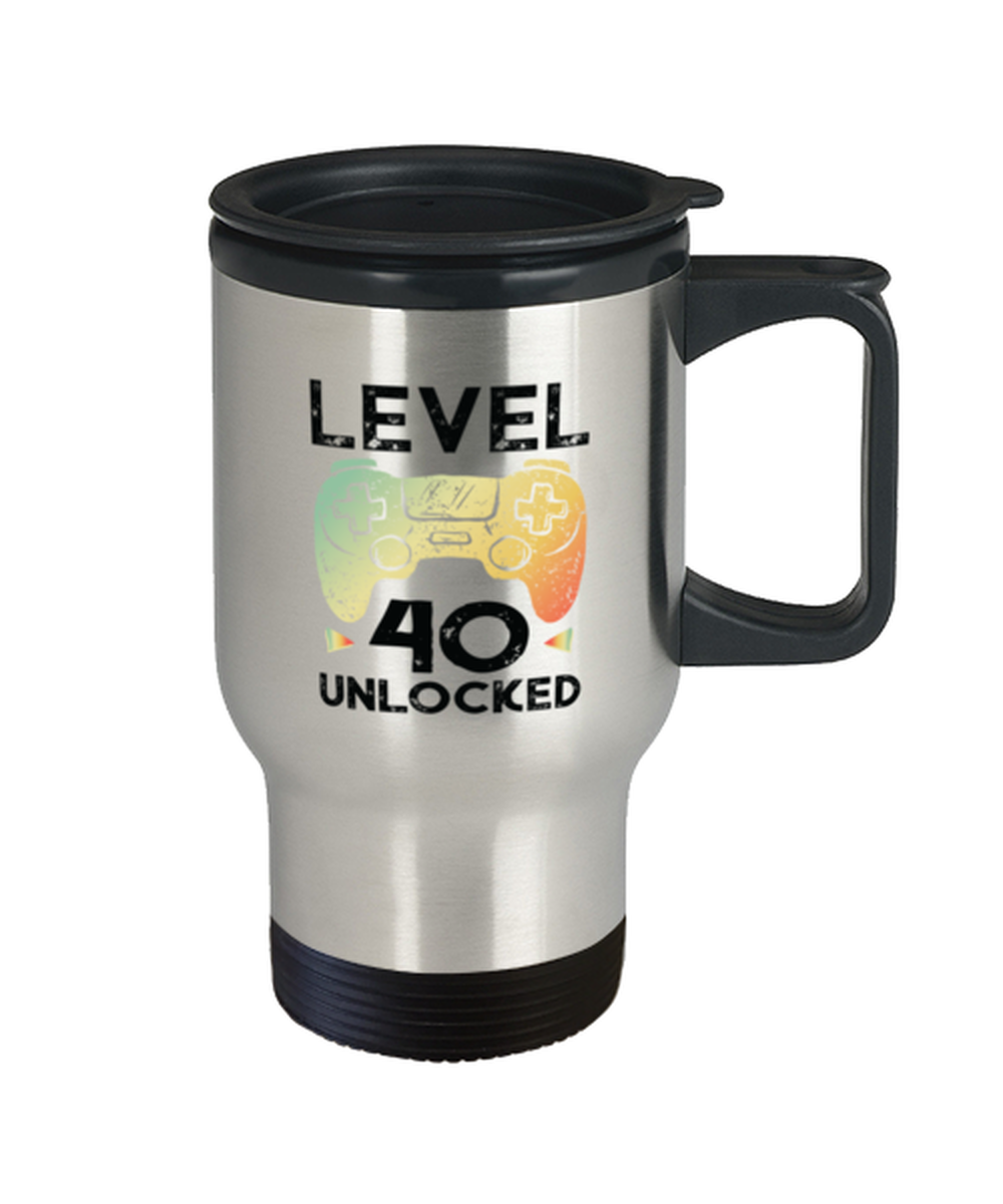 40th Birthday Boy Gamer Gifts Level 40 Unlocked Gamer Gaming Travel Mug Gift
