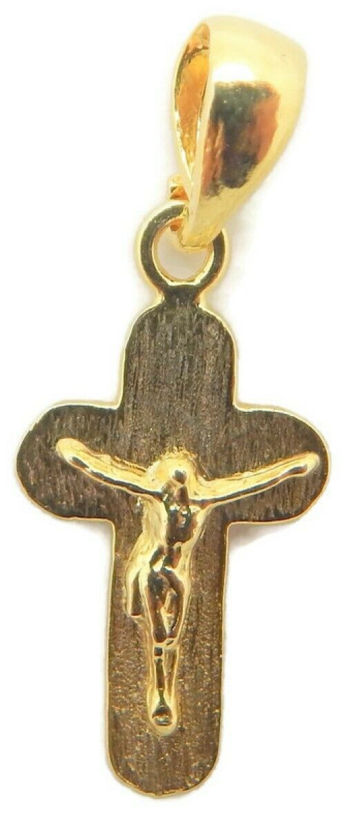YELLOW GOLD ROUND LATIN CROSS PENDANT CHARM. THE CHARM IS 100% HANDCRAFTED AND