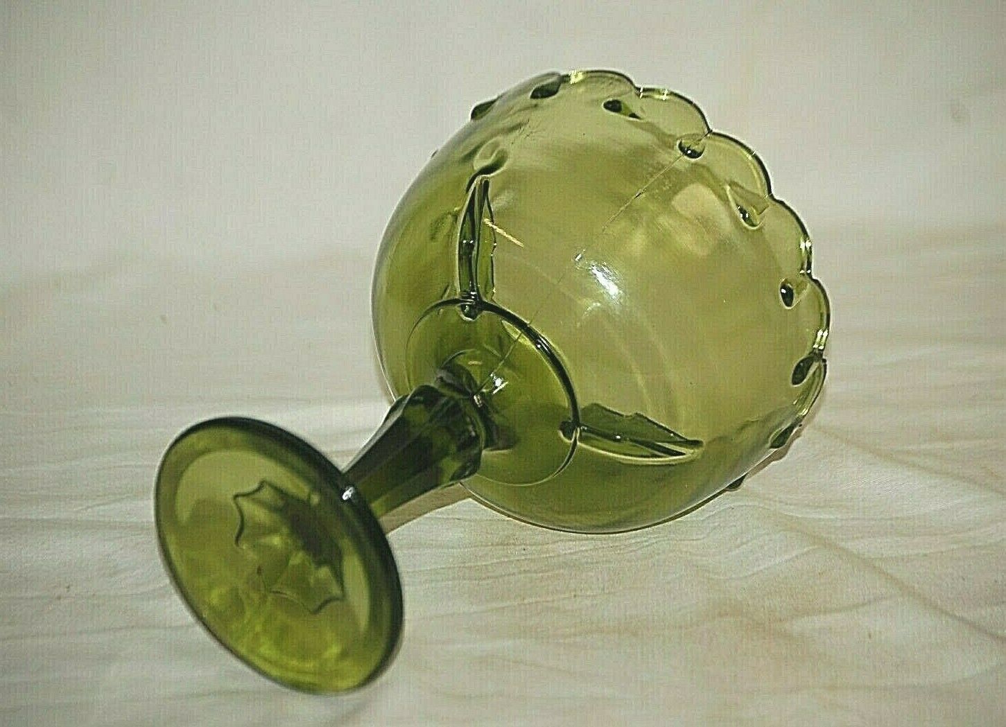 Vintage Teardrop Green Indiana Glass Pedestal Footed Planter Table Centerpiece