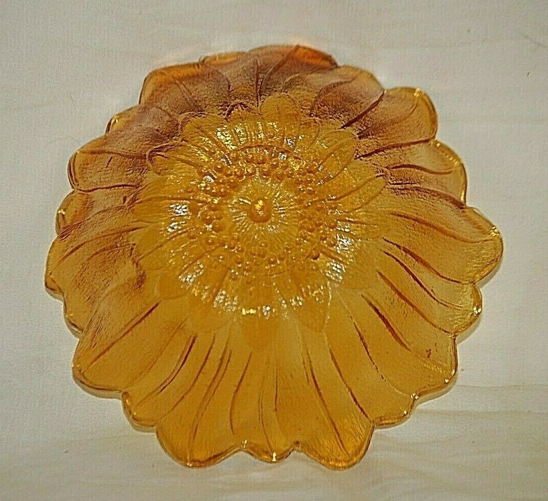 Lily Pons Amber by Indiana Glass 7" Nappy Bowl Round Candy Dish Sunflower MCM