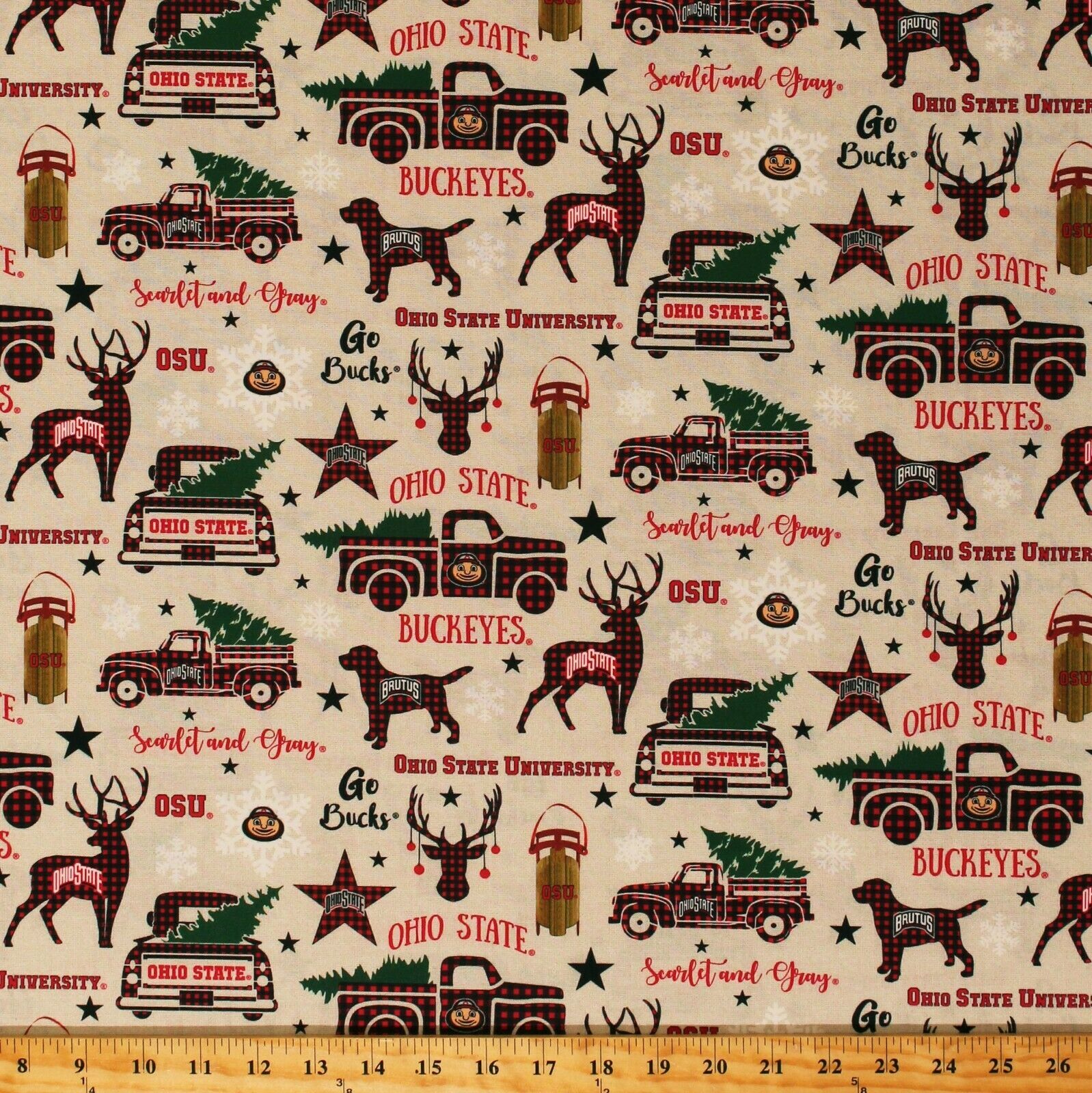 Cotton Ohio State University Buckeyes Winter Holiday Cotton Fabric Print D351.07