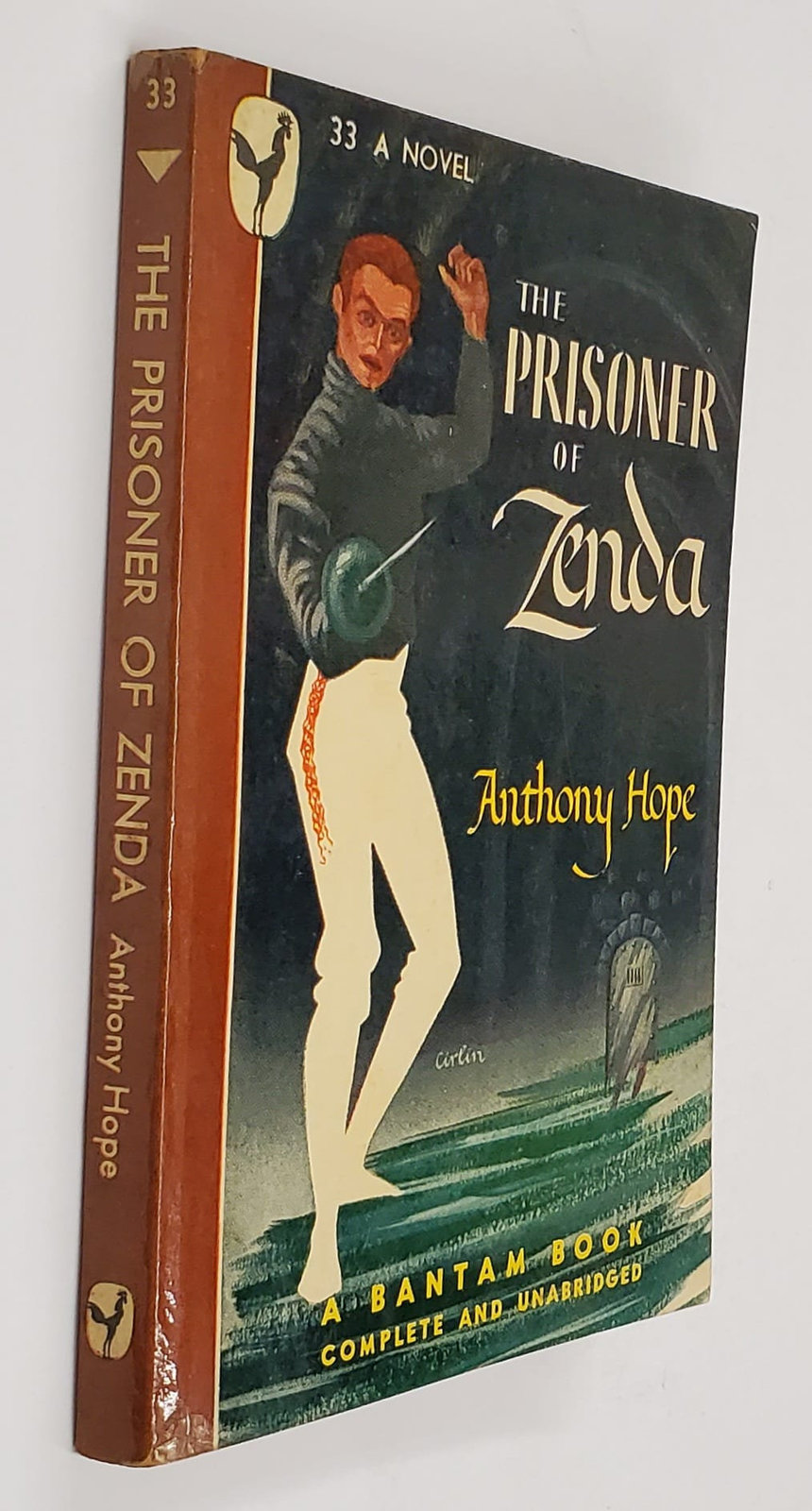 The Prisoner of Zenda by Anthony Hope. Published by Bantam Books in 1946. "The Prisoner of Zenda" is an adventure novel in which the King of Ruritania is drugged on the eve of his coronation, and thus is unable to attend the ceremony. Political forces within the realm are such, that, in order for the king to retain the crown, his coronation must proceed. Fortuitously, an English gentleman on holiday in Ruritania, who resembles the monarch, is persuaded to act as his political decoy, in effort to save the unstable political situation of the interregnum... Of course, complications along the way, plots and counter-plots will follow. Pages are browning with age, and have no writing except for gift inscription facing title page. Cover has some scuffing and some speckles.
