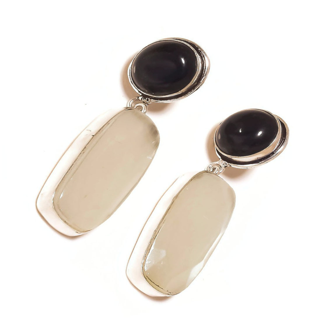 Dark Blue Iolite,Gray Moonstone Gems 925 Silver Overlay Handmade Dangle Earrings