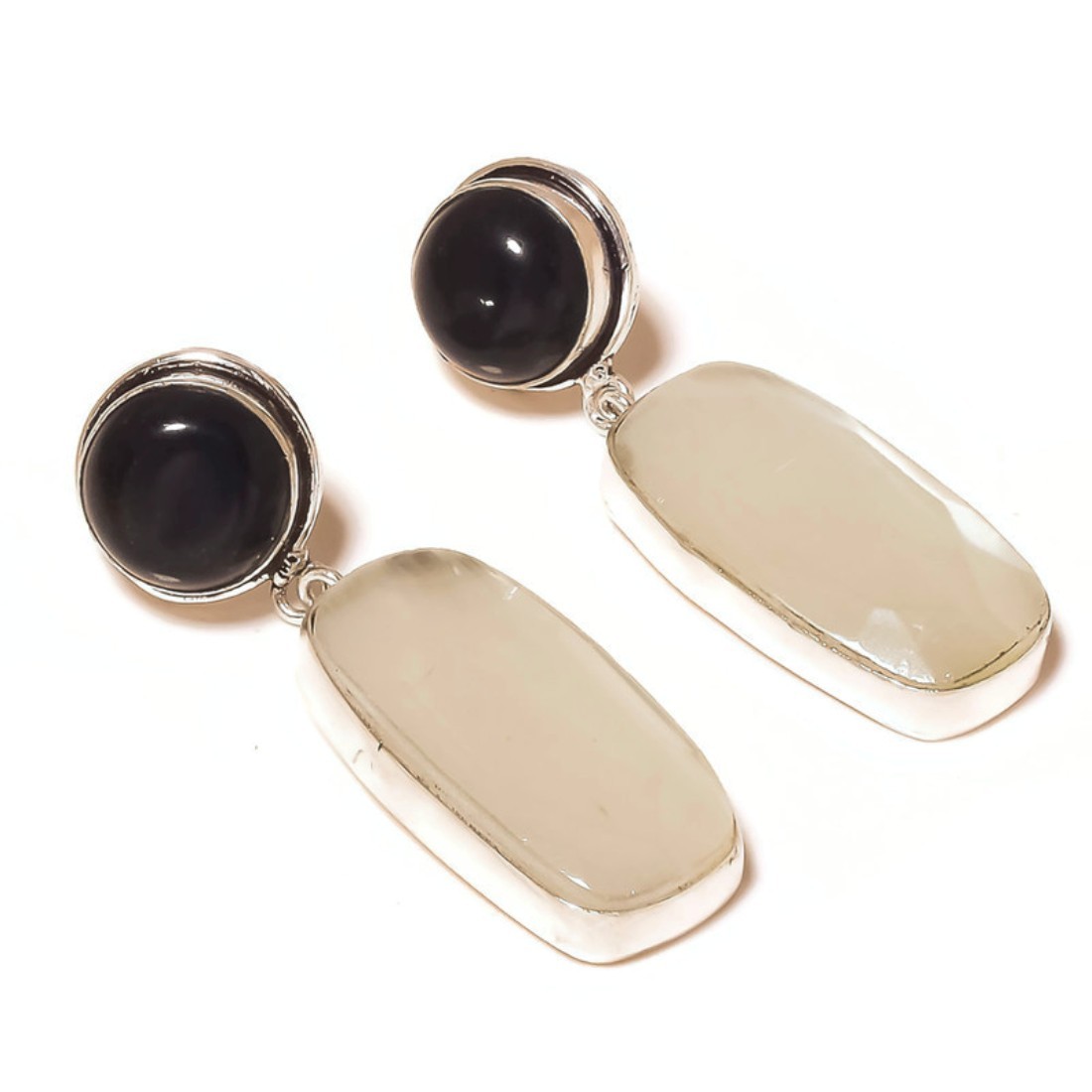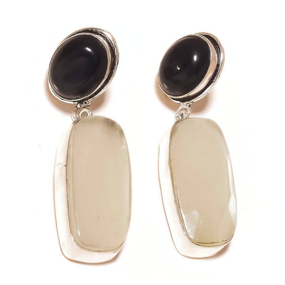 Dark Blue Iolite, Gray Moonstone Gemstone 925 Silver Overlay Handmade Dangle Earrings