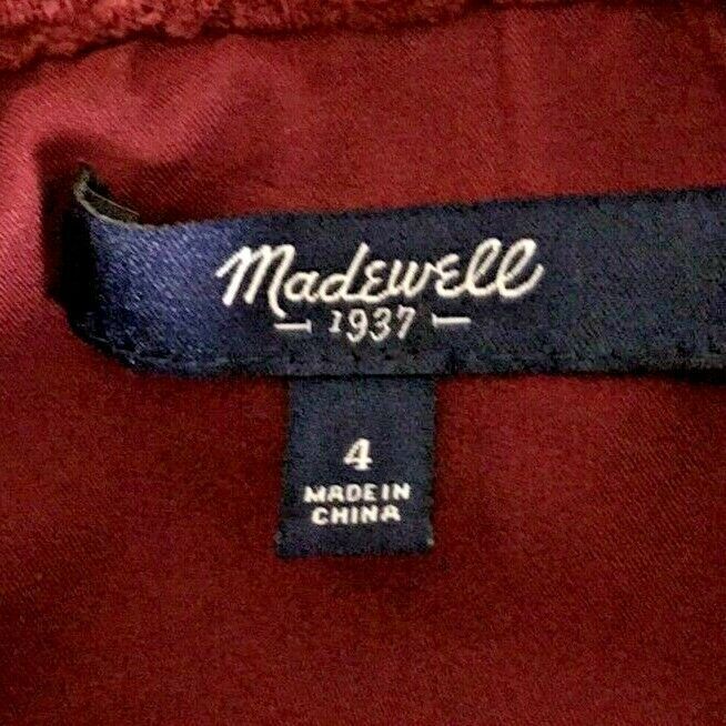 Madewell Women's Lace Mini Skirt Size 4 - Maroon. Super cute mini skirt - the fiber content tag has been removed, but my best guess is that it is polyester. Waistband measures 30โ. Total length from top of the waistband to hem is 15โ. Excellent Used Condition - See Photos for further description.