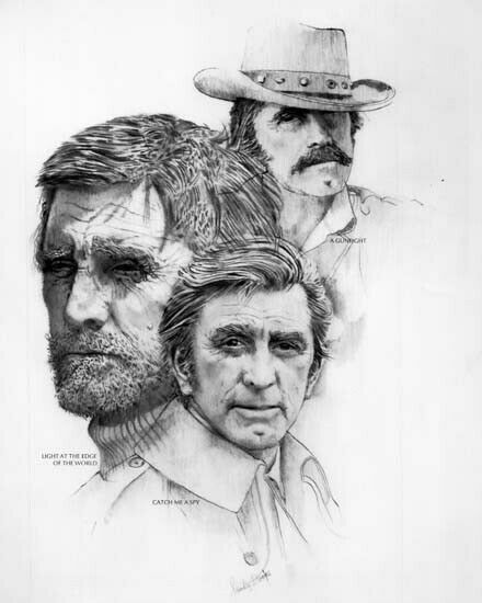 Kirk Douglas artist drawn A Gunfight Catch Me A Spy Light at Edge of World 8x10