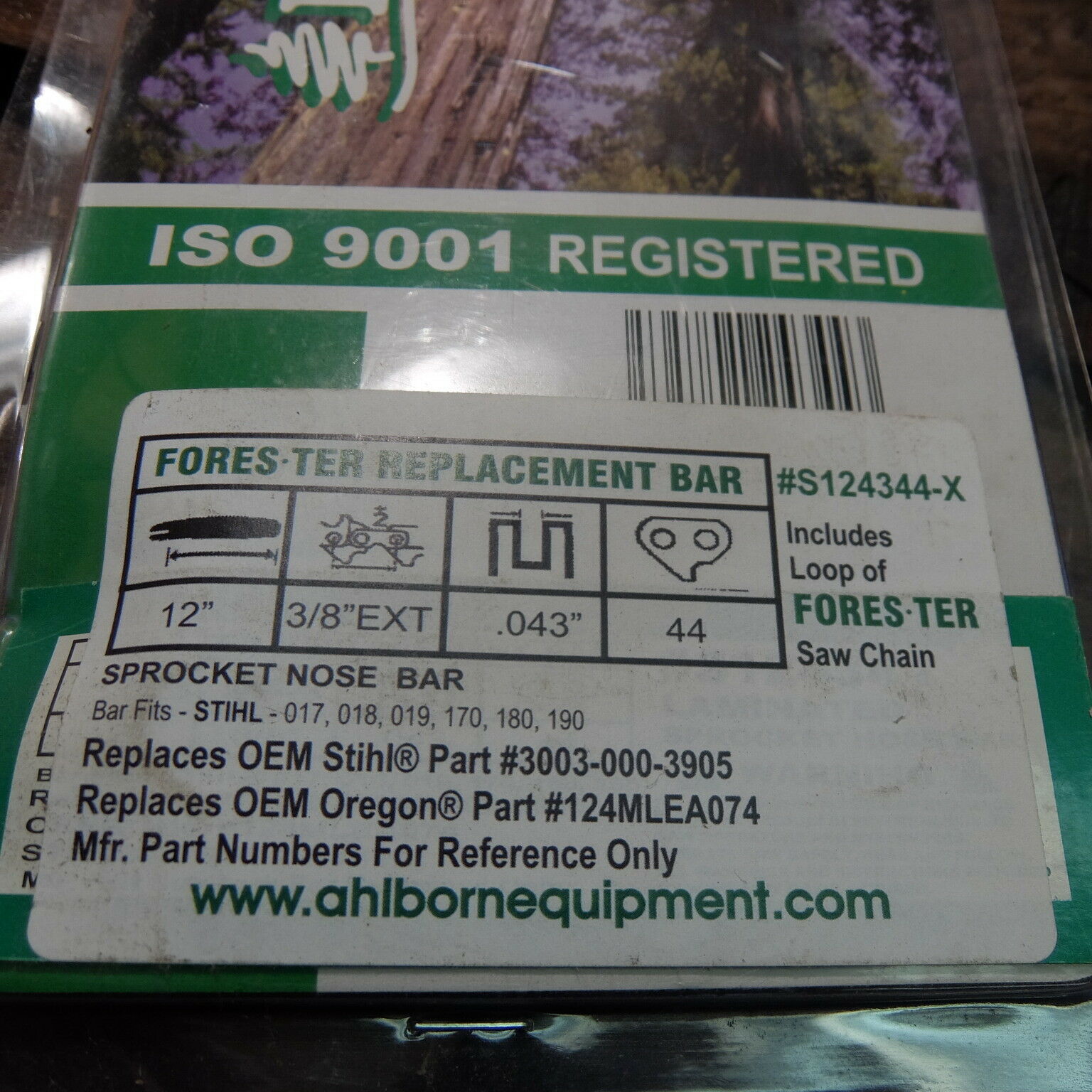 New Forester S124344-X 12" Bar and Chain Combo 3/8 EXT .043 Pitch 44 Links
