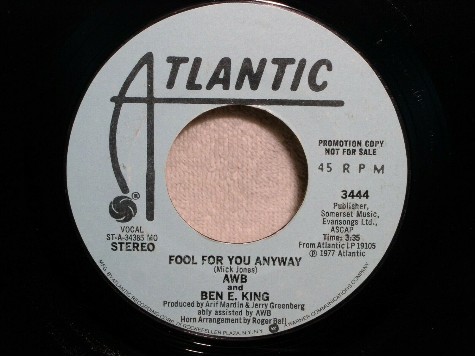 This is the original, vintage promotional 45 rpm phonograph record by Average White Band entitled, "Fool For You Anyway" (with Ben E. King). Same flipside. Record label: Atlantic 3444.