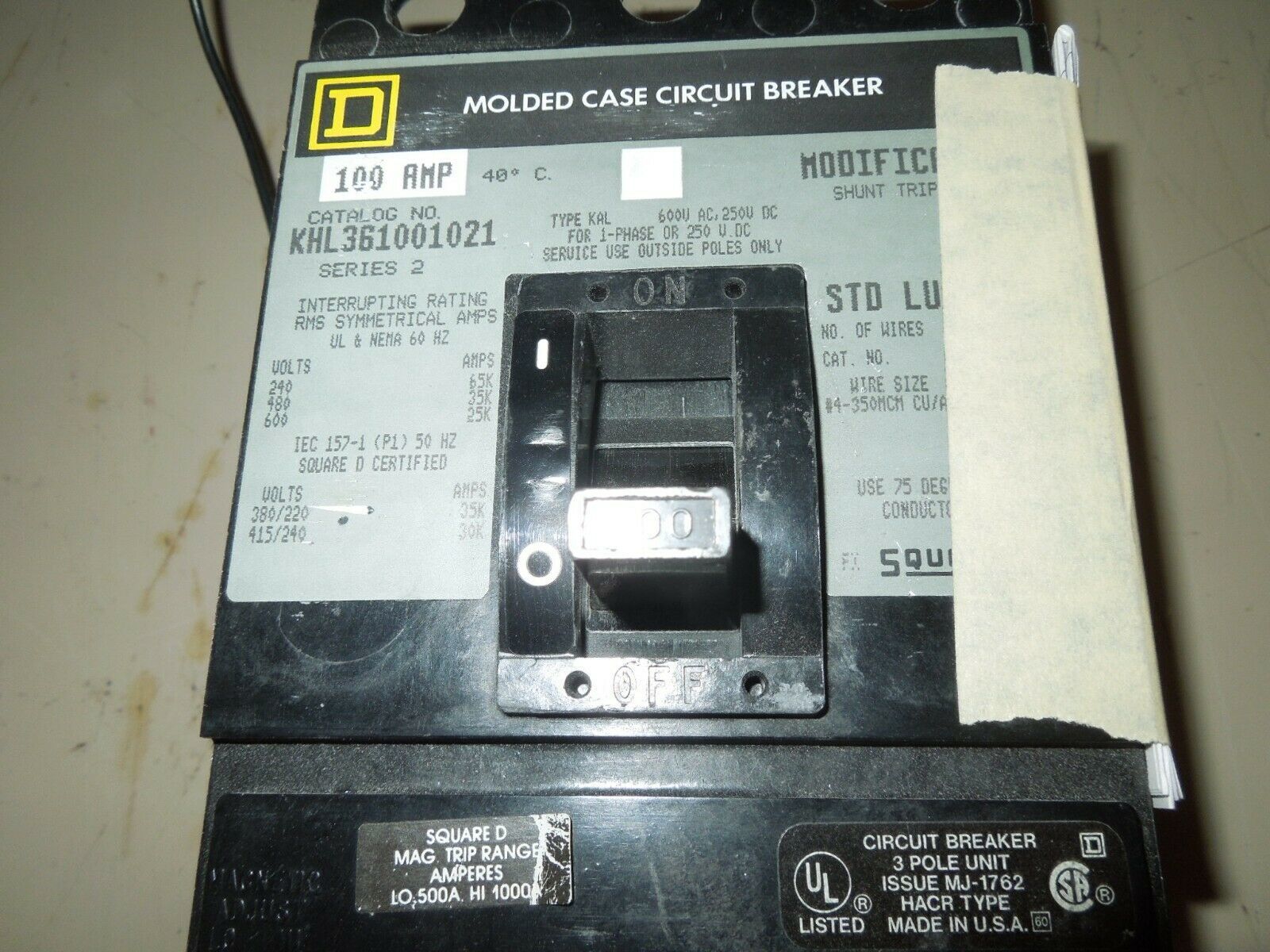 Square D KHL361001021 Circuit Breaker W/ and similar items