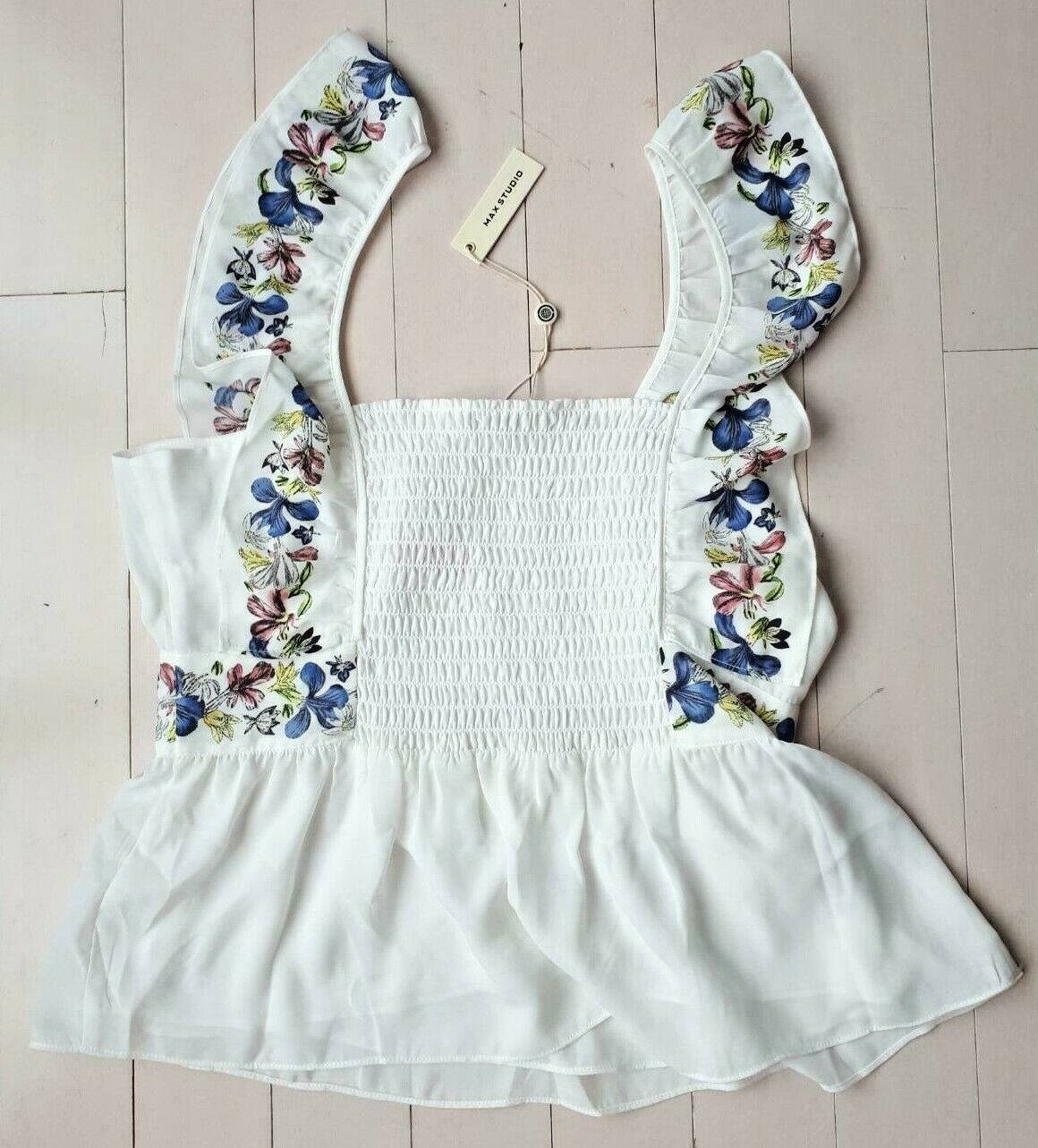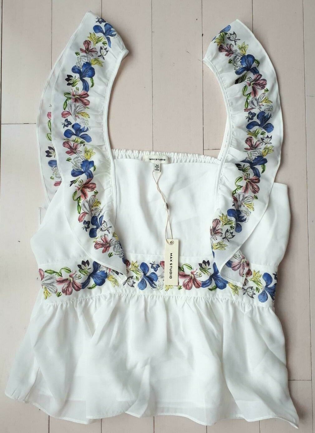 Max Studio Women's Floral Strap Ruched Back Top White ( M )