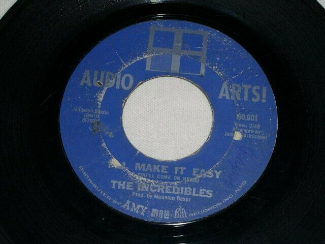 This is the original, vintage 45 rpm phonograph record by The Incredibles entitled, "I'll Make It Easy (if you'll come on home)". Flipside: "Crying Heart". Record label: Audio Arts: 60,001.