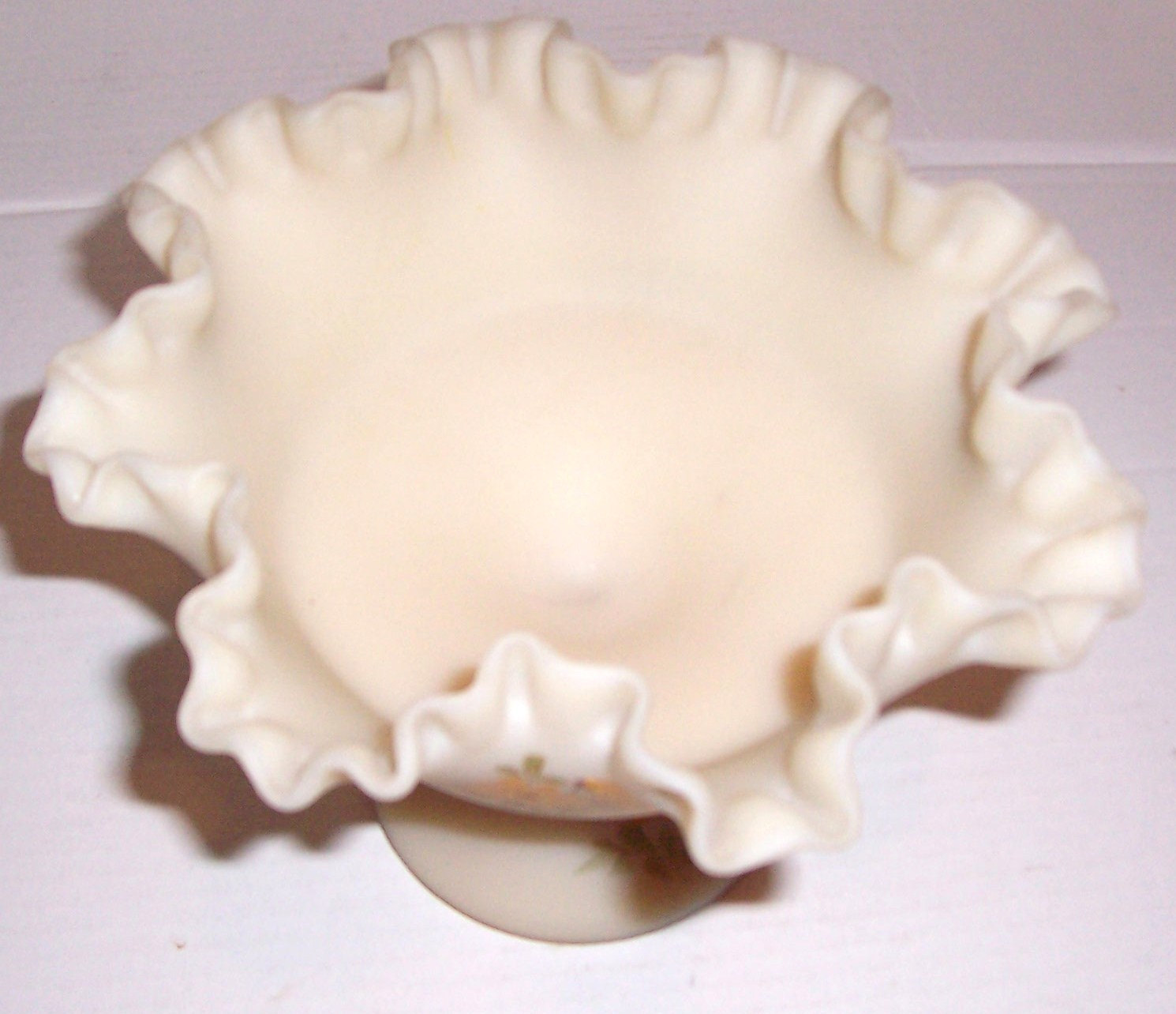 Fenton Custard Large Ruffled Glass Handpainted Art Display Compote Signed Mason