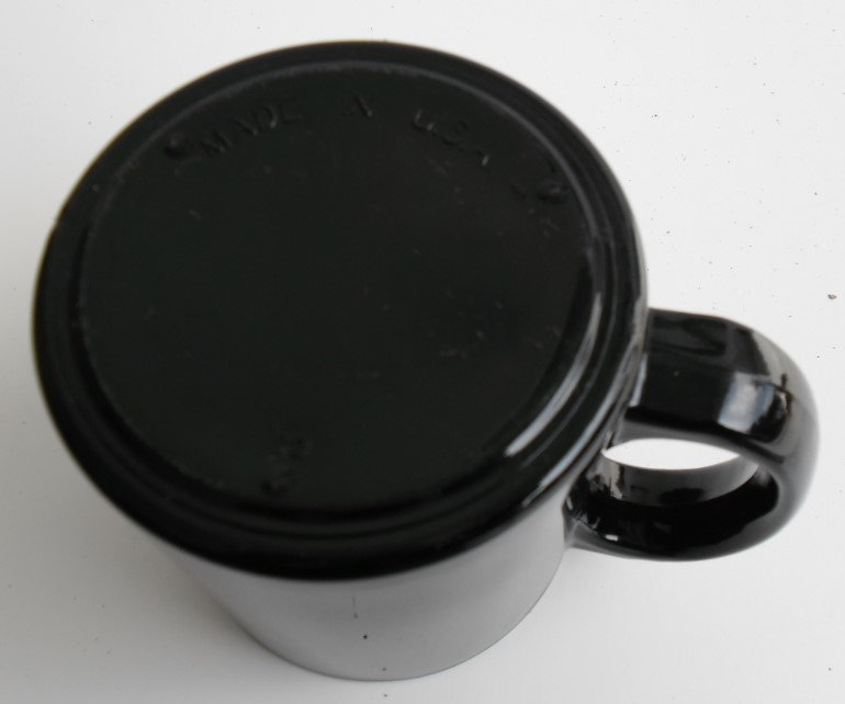 This solid glass mug is a solid black color and measures approx 3 3/4" in height and has good clear glass clarity.