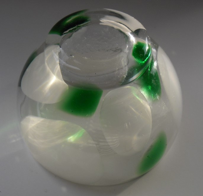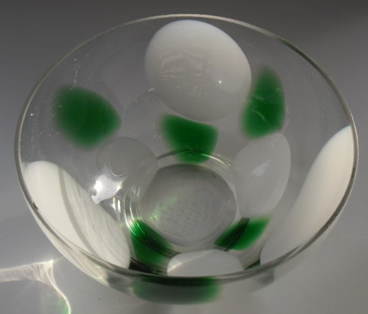 Vintage Handblown Green and White Colored Glass Designed Dessert Bowl