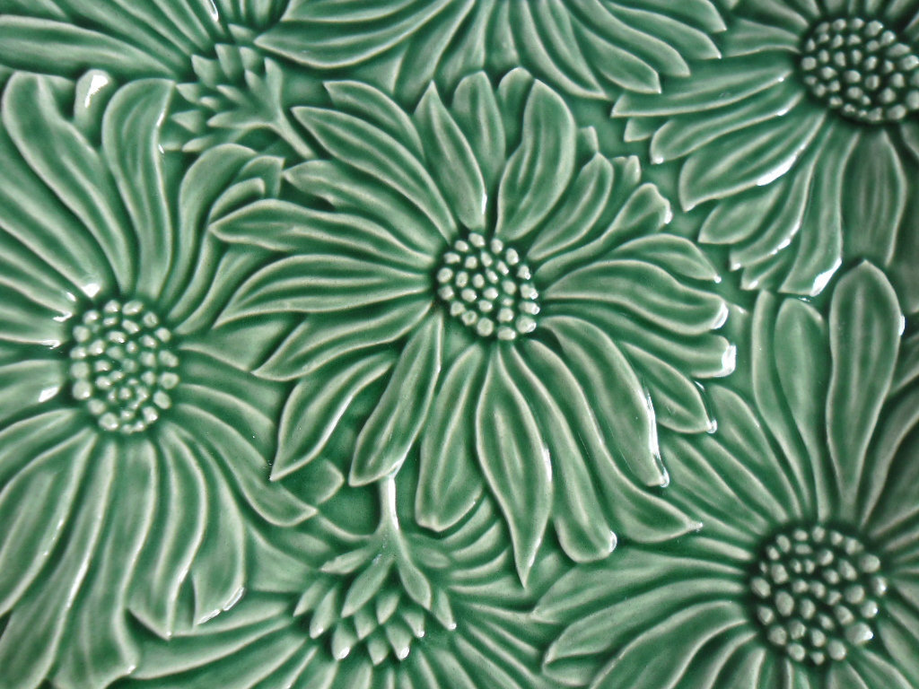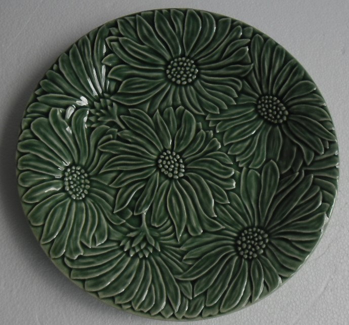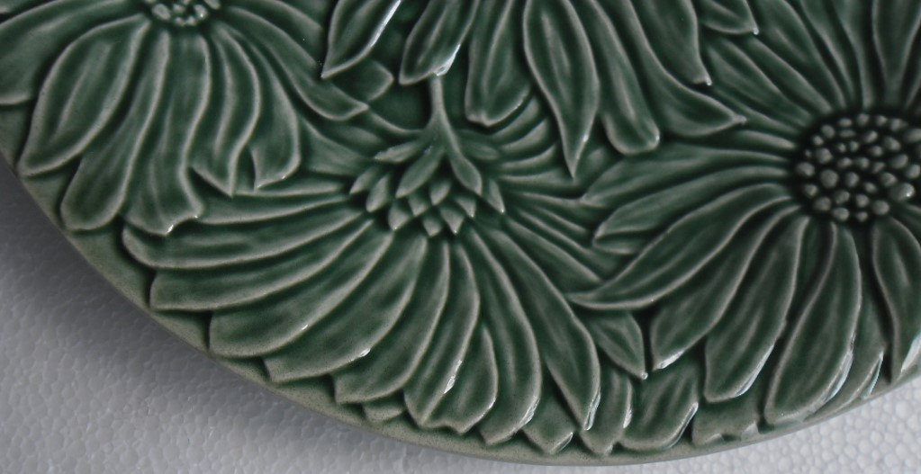 Plate has a beautiful glazed ceramic design with a raised flower design