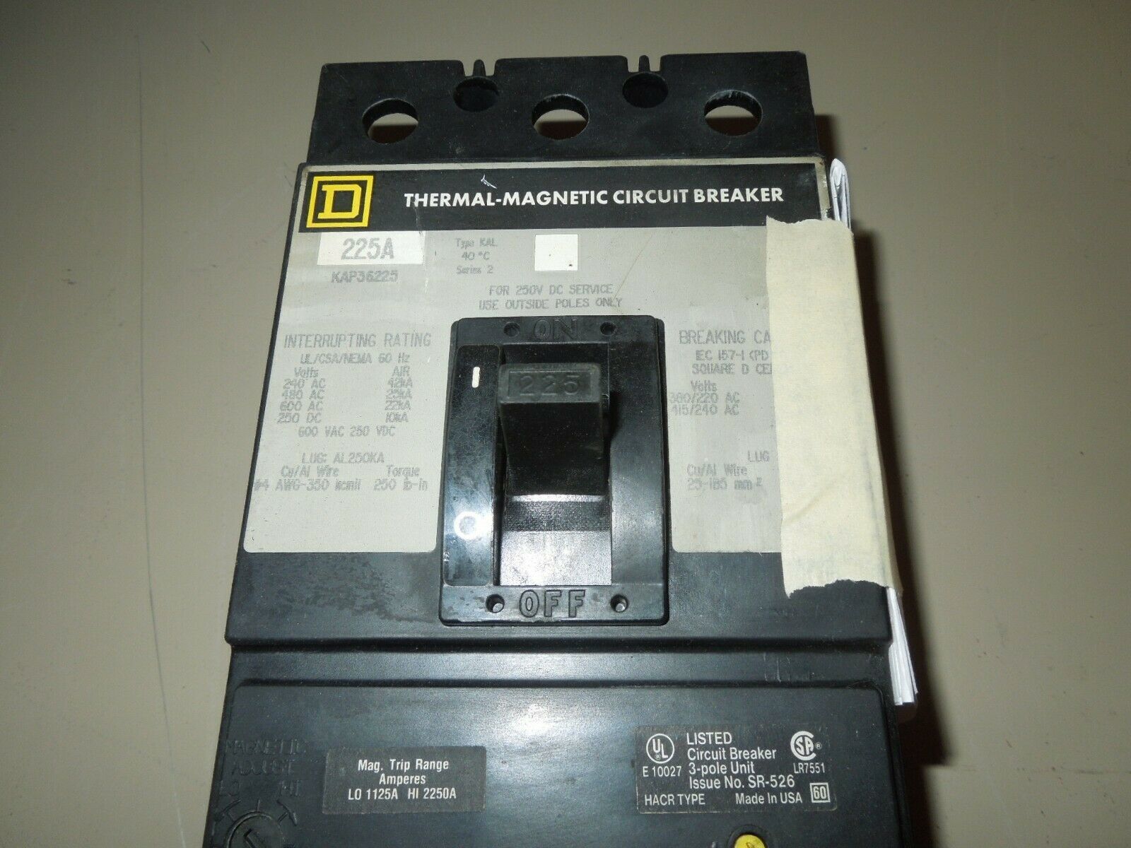 Square D KAP36225 Circuit Breaker 225A 3P 600V AC 250V DC Used