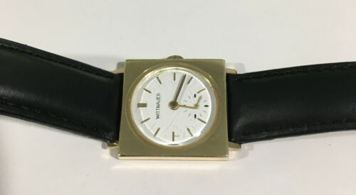 Here we have a beautiful 14k yellow gold vintage wittnauer mechanical watch. Comes with a new not original leather band. Weigth: 15.7g. Measurements: 0.90" x 0.90" face size. In great working condition.Selling as is, item is vintage and will show normal wear. The perfect gift for your loved one or as a collector's item. Buy with confidence, we only sell top quality items. Thanks for looking and have a great day.