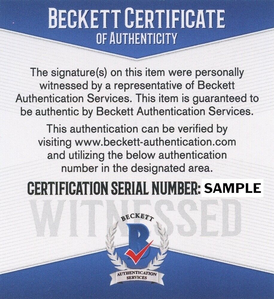 This item has been certified AUTHENTIC by one of the most reputable and recognized authenticators in the business today, Beckett Authentication Services (BAS). This item comes with a BAS numbered tamper-proof authentication sticker Certificate of Authenticity card that can be reviewed on their website 24/7/365 to guarantee its authenticity.