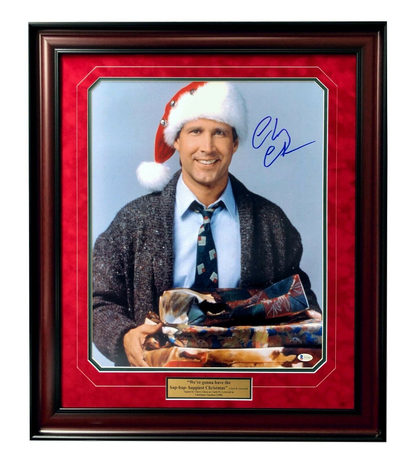 Looking for the next big thing to add to your memorabilia collection? Well, this is it! Chevy Chase Hand Signed 16x20 Photo Framed!! This is must have for Vacation fans that features the autograph of Clark Griswold with his iconic quote laser engraved on to the gold nameplate of the frame from the movie "Hap-Hap-Hapiest Christmas" This photo is museum quality professionally custom framed in a cherry traditional style frame with double suede Christmas color matting and a glass display. Frame measures approximately 28" X 24". This item has been certified AUTHENTIC by one of the most reputable and recognized authenticators in the business today, Beckett Authentication Services (BAS). This item comes with a BAS numbered tamper-proof authentication sticker amp; Certificate of Authenticity card that can be reviewed on their website 24/7/365 to guarantee its authenticity.