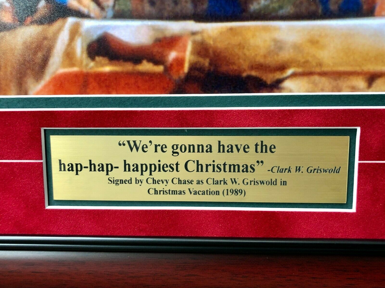 Looking for the next big thing to add to your memorabilia collection? Well, this is it! Chevy Chase Hand Signed 16x20 Photo Framed!! This is must have for Vacation fans that features the autograph of Clark Griswold with his iconic quote laser engraved on to the gold nameplate of the frame from the movie "Hap-Hap-Hapiest Christmas"