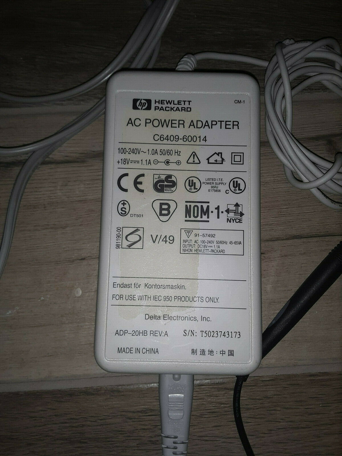 Genuine HP DeskJet AC Power Supply 18V 1.1A see Pics for Ohm Meter C6409-60014