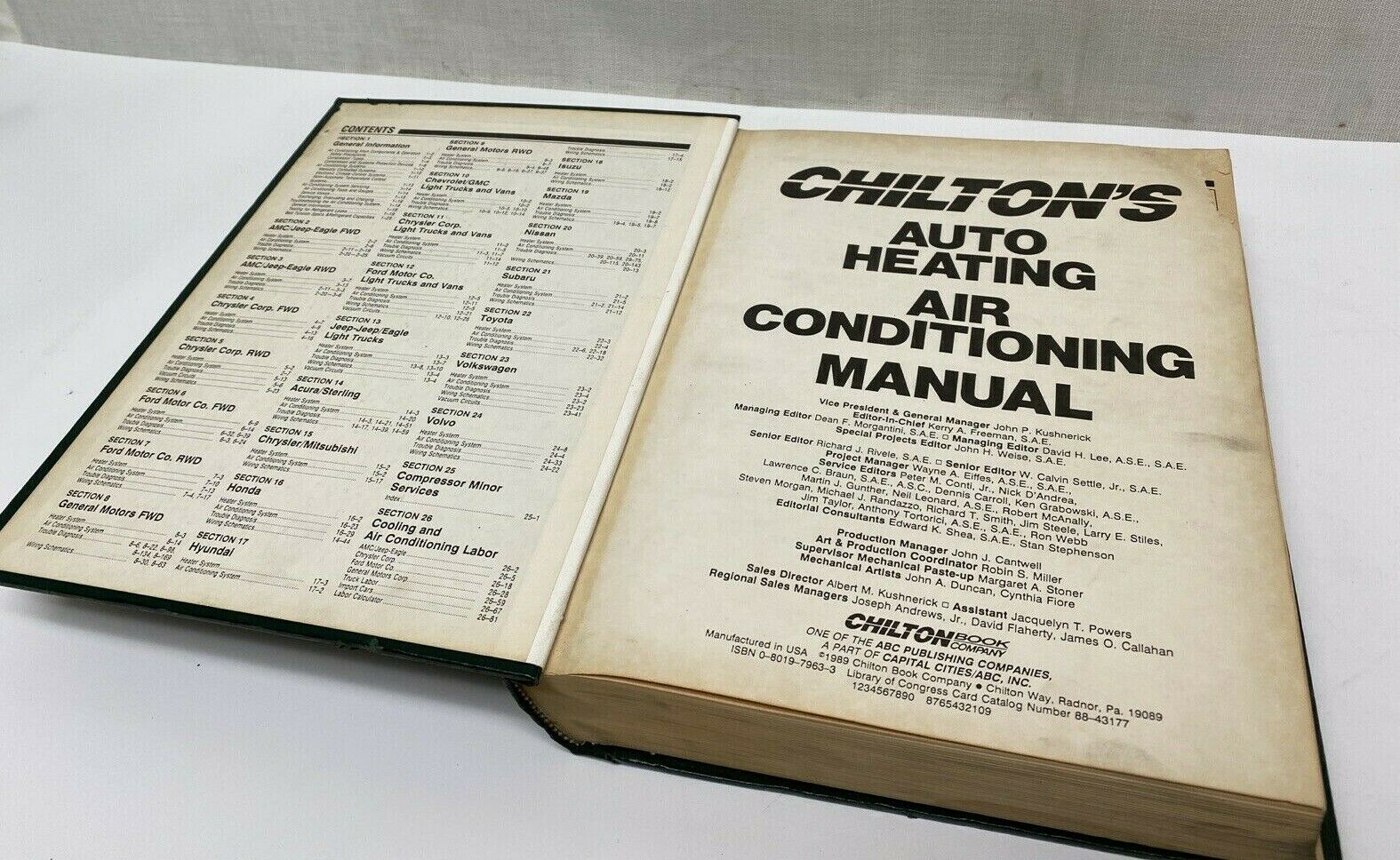 Pre-owned. Some edge spine wear and discoloration due to age. Possible creasing in corners and grease smudges typical of a manual found in an auto shop