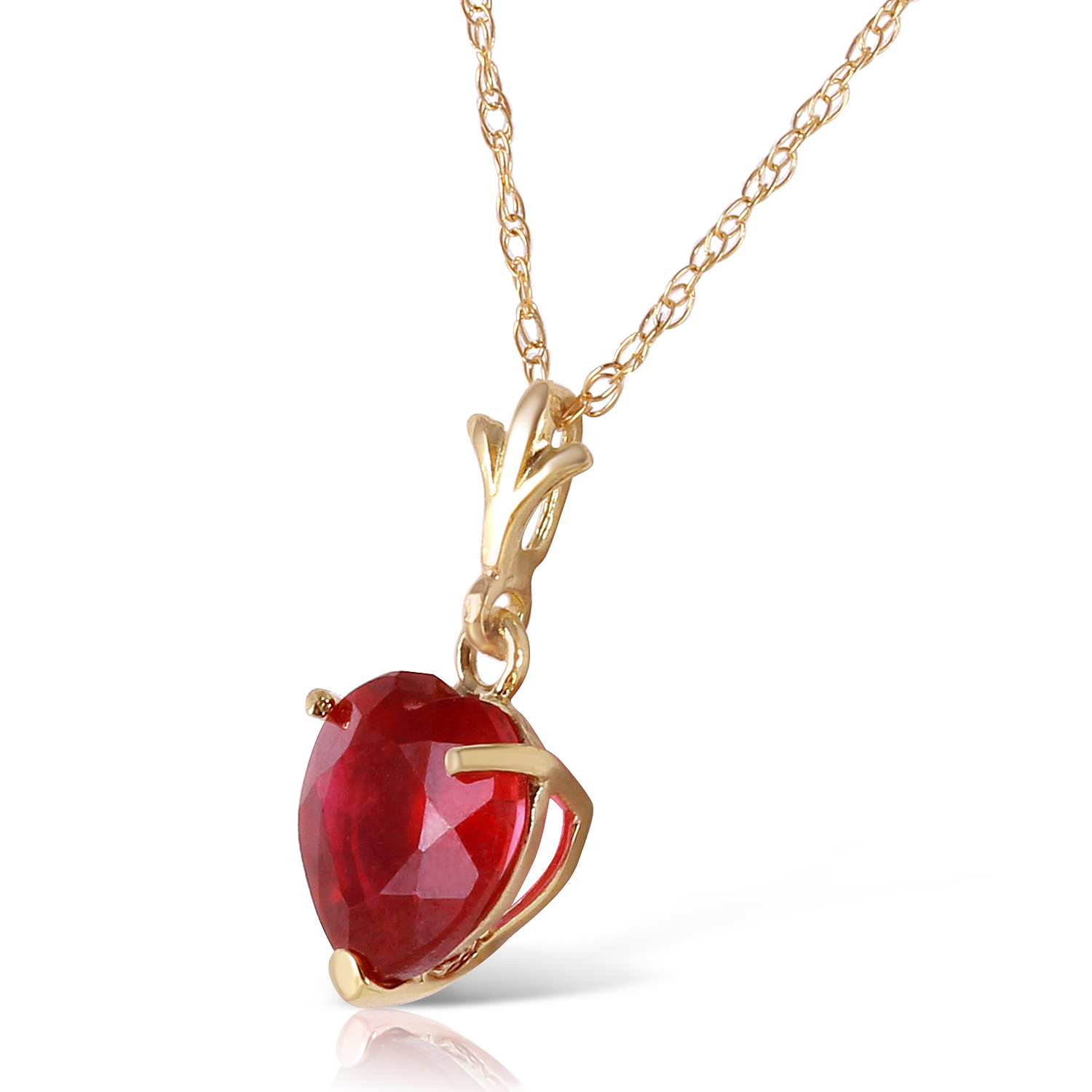 1.45 Carat 14k Solid Yellow Gold Necklace Natural Heart Ruby