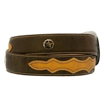 Cowboy Western Dress Belt Concho Overlay Studded Real Leather Rustic Brown Cinto