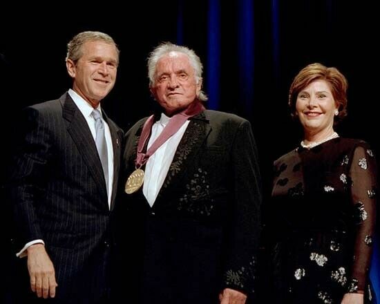 Johnny Cash receives Kennedy Center Honor President George W Bush 11x14 photo