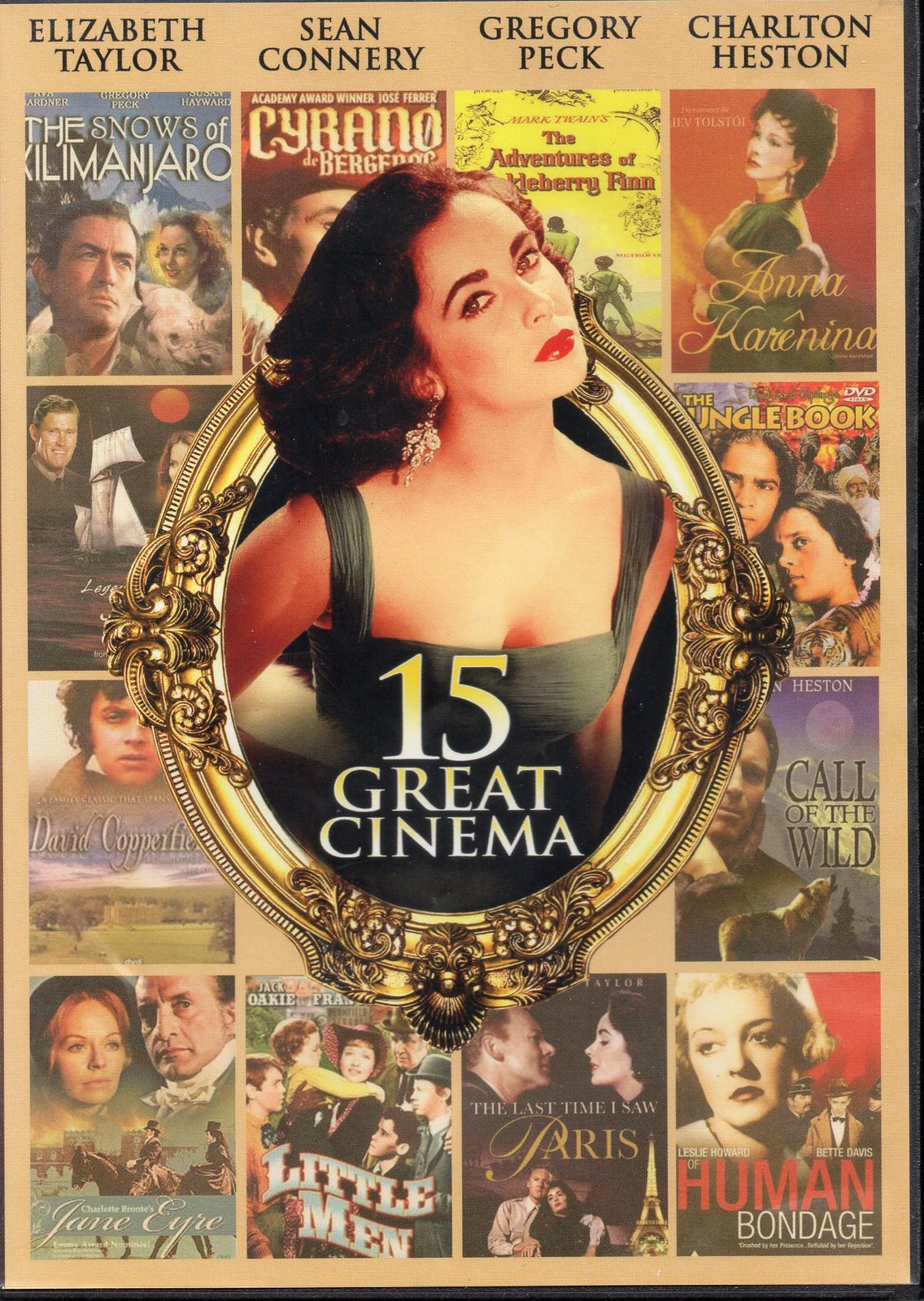 The 15 GREAT CINEMA movies in this set are: 'Snows of Kilimanjaro'; 'Anna Karenina'; 'A Connecticut Yankee in King Arthur's Court'; 'Tale of Two Cities'; 'Jane Eyre'; 'Legend of the Sea Wolf';