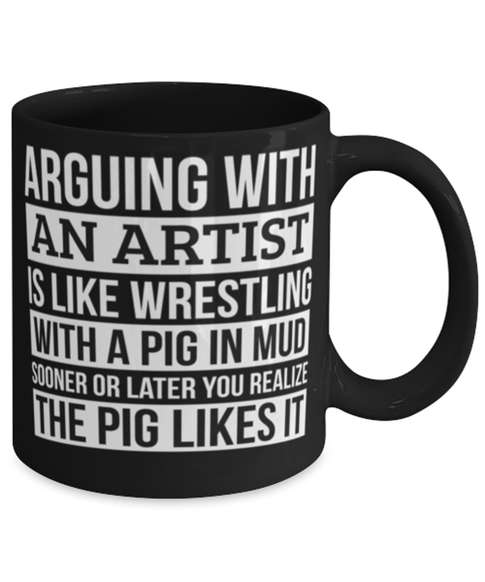 Artist Coffee Mug, Like Arguing With A Pig in Mud Artist Gifts Funny Saying