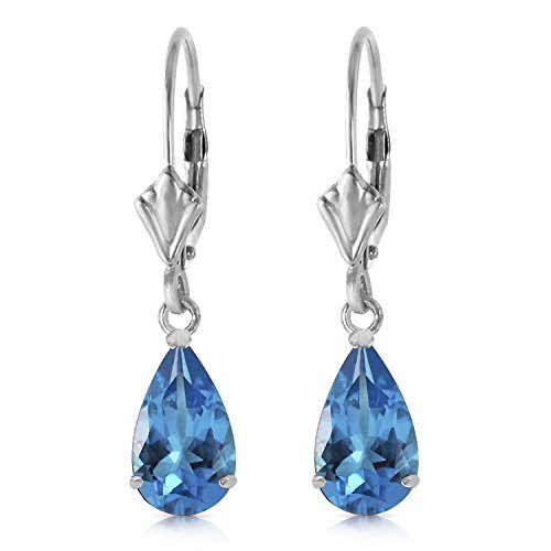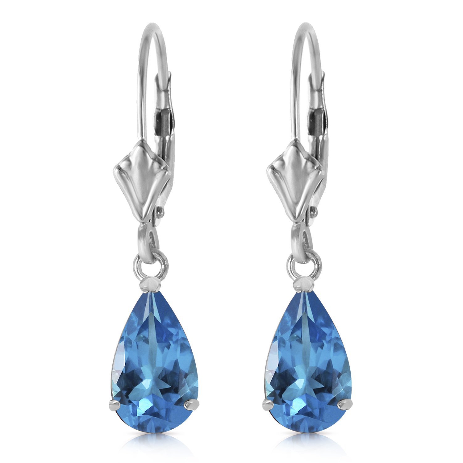 3.77 Carat 14k Solid White Gold Leverback Earrings Blue Topaz