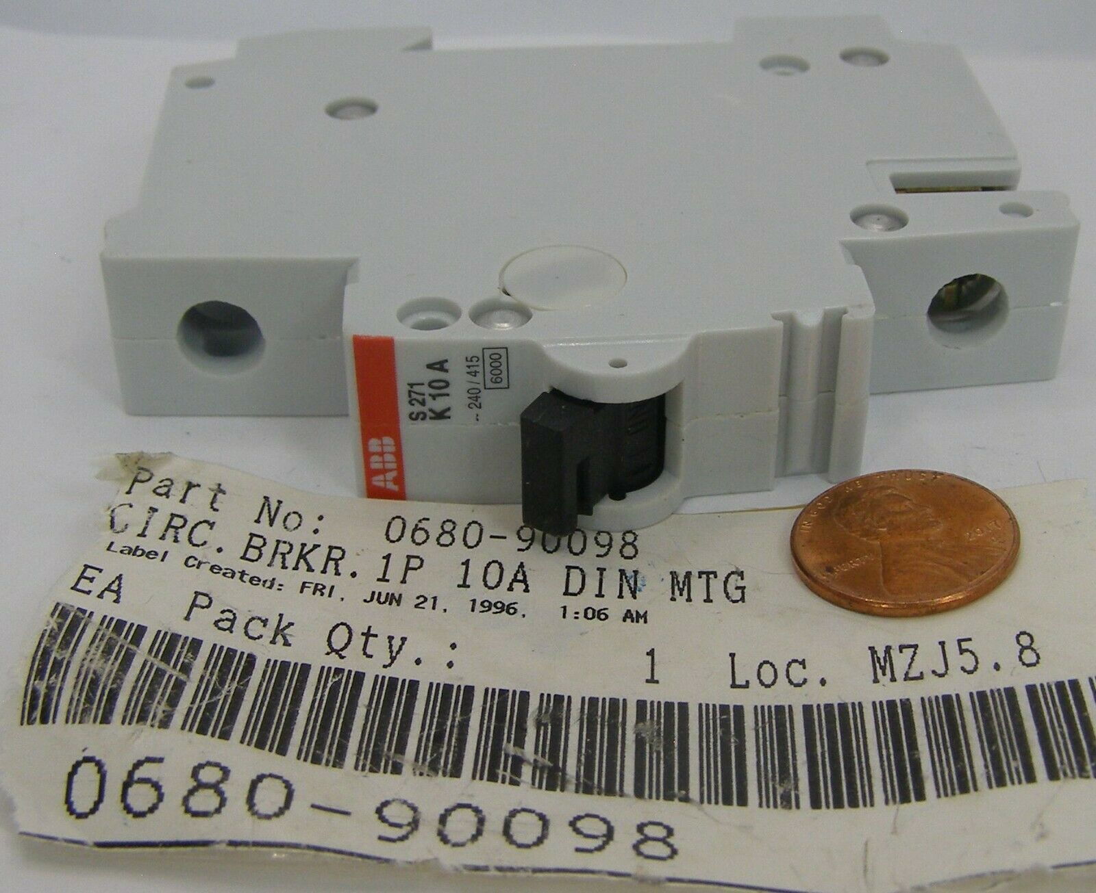 ABB Circuit Breaker S271K10A 1P 10A DIN MTG 0680-90098 VDE060 1 count