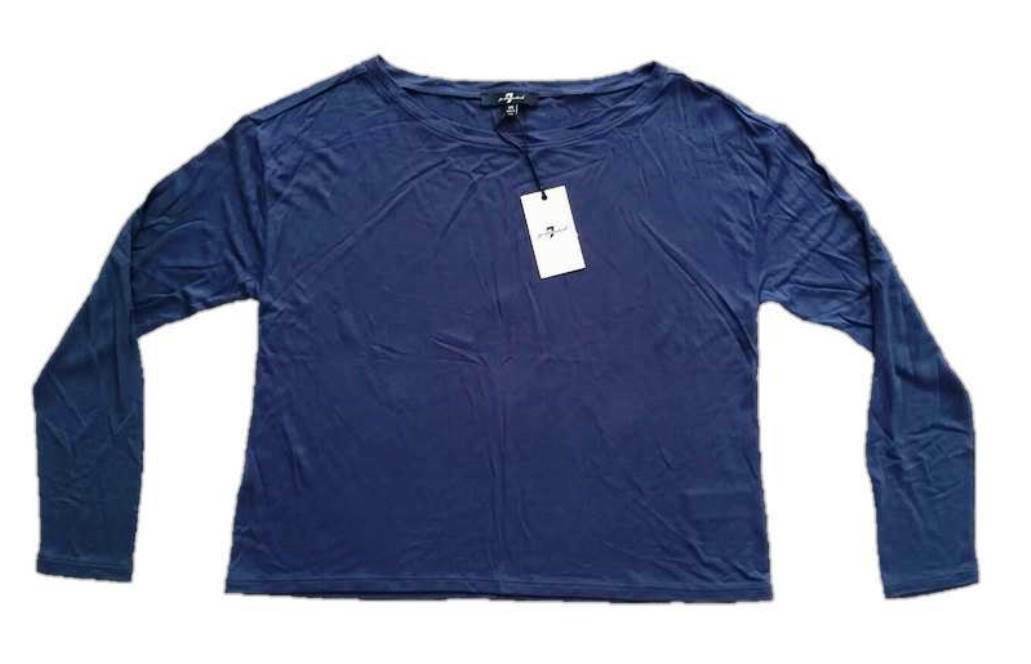 7 FOR ALL MANKIND Long Sleeve BOATNECK Modal TOP Shirt INK BLUE ( XS )