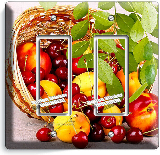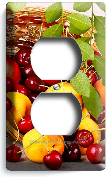 FRESH PEACHES AND CHERRIES FRUIT BASKET LIGHT SWITCH OUTLET WALL PLATE ART DECOR