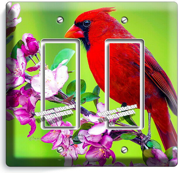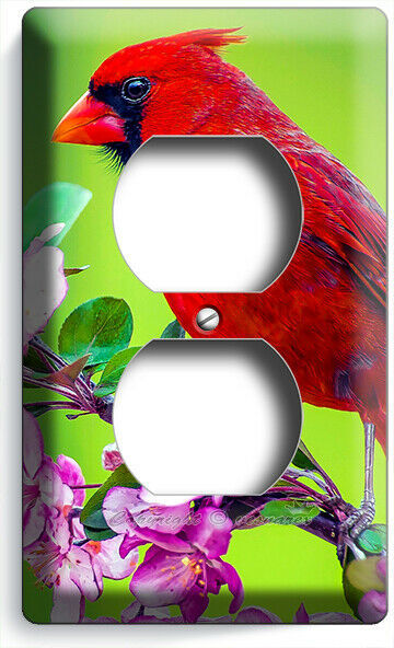 RED CARDINAL BIRD FLOWER BLOSSOM LIGHT SWITCH OUTLET WALL COVER PLATE ROOM DECOR