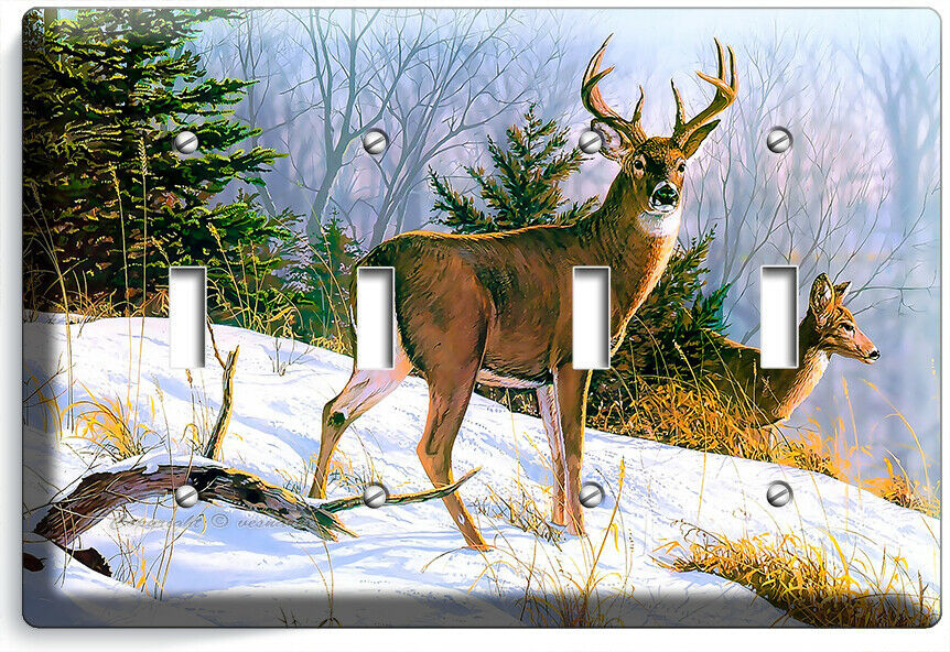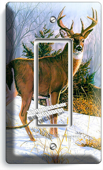 WHITETAIL DEER BUCK WINTER LIGHT SWITCH WALL PLATE OUTLET HUNTING CABIN HD DECOR