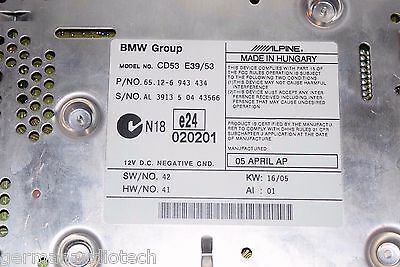 This is your opportunity to purchase (1) BMW BUSINESS CD PLAYER. Production date is APRIL 2005, which means it is also compatible with AUX Input, iPOD/iPhone and Satellite Radio adapters. Item is fully tested in perfect working condition, GUARANTEED! This is a high-powered, Class 1 Laser Product. Full RDS text ready, displays radio station info. Will play CD, CD-R, CD-RW (burned CDs) MP3 formatted discs. Radio has the ability of simply adapting to iPOD or MP3 device. Replace that out-dated cassette player and give yourself the ability to play CD's "on the fly", right from the front seats! When upgrading to this Business CD from a cassette tape player, the 'bass/tremble/balance/fade' EQ options relocate to your MID display. Your BMW is not the place for aftermarket head units, nothing works better than this OEM part! Bidders are required to do their research on compatibility, but if you have any questions we are happy to help! Light wear on used parts. If you need an adapter for a pre-2000 build E39, please . Please see ACTUAL photos below. International and Canadian buyers welcome!