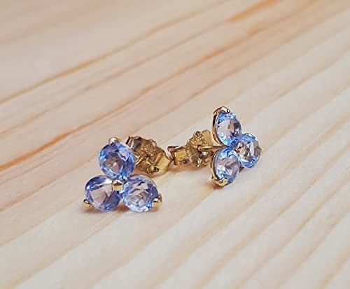 Galaxy Gold GG 14K Solid Yellow Gold Natural Tanzanite Stud Earrings for Women,