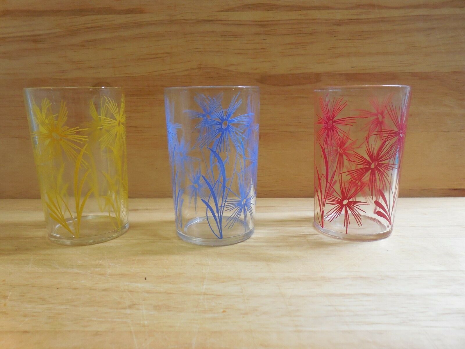 DESCRIPTION: Set of 3 windflower Swanky Swigs - 3 1/2". They are blue, red yellow. Unbranded. Pictures are considered part of description.