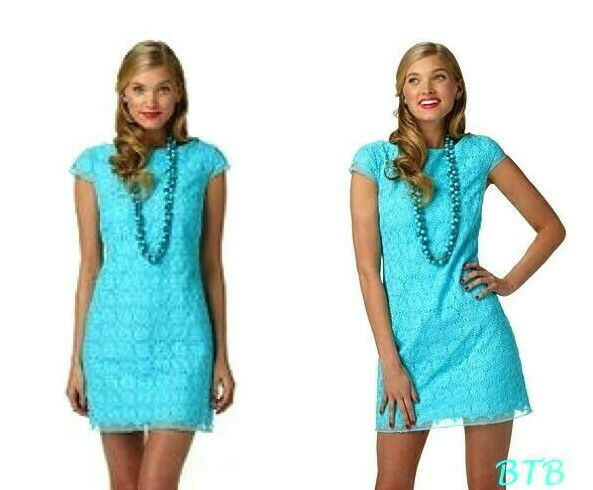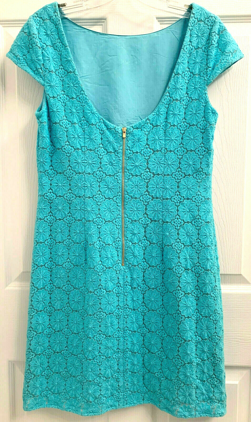 $348 LILLY PULITZER SZ 6 JEANETTE DRESS SHORELY BLUE DAISY LACE WOMEN'S EUC