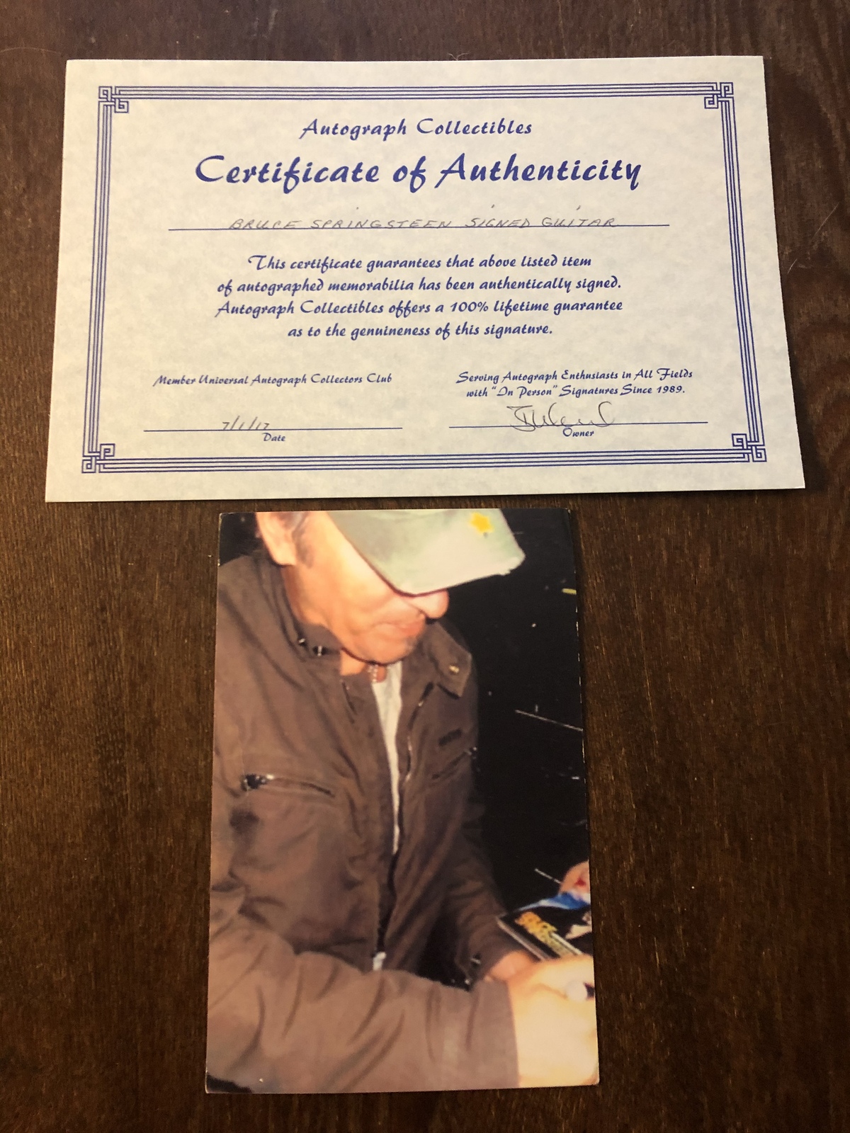 BRUCE signed this guitar outside his hotel before a concert. THE AUTOGRAPH STANDS OUT BEAUTIFUL :)
