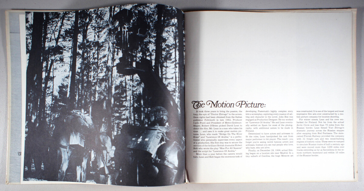 Doctor Zhivago, is a lively and vibrant work from the brilliant young French composer Maurice Jarre. Already heralded for his acclaimed scores in the films The Longest Day, The Collector, and Lawrence of Arabia, Jarre put together a bold and expressive score in spirited fashion. The music for Doctor Zhivago includes Russian folk tunes, bits from Soviet marches, songs, ballads, and dances. Featured in this work is the lovely and haunting Lara's Theme, as well as themes noting the violence and terror of the revolution. With a chilling sense of detail, scope, and experimentation, Jarre proves to be successful at capturing the essence of the film's main character, Doctor Zhivago, featured earlier in the book by Boris Pasternak, who received the Nobel Prize for Literature. The album was put together using an orchestra unprecedented in its size and scope at the time. Jarre conducted the orchestra himself for ten days, using the full 110-piece group assembled in Hollywood for the occasion. Also featured was a unique group of 24 balalaika musicians and Japanese instrumentalists; koto, gong, organ, Novachord, electric sonovox, harpsichord, electric and tack pianos, and zither were included in the ensemble. The music was accompanied by 40 voices. Leo Arnaud, Lou Raderman, and Monique Rollin each worked closely with Jarre during the recording of this film masterpiece. The music itself is fresh, unique, and daring, performed by the orchestra with enthusiasm and a remarkable sense of energy and flair. It was nominated and won Grammy Award for Best Score Soundtrack for Visual Media
