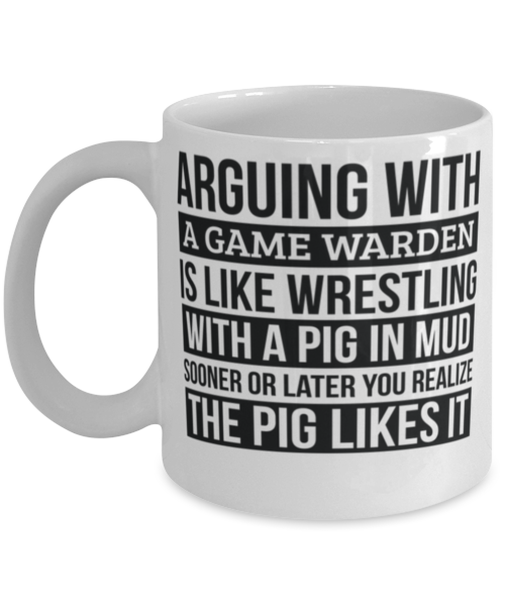 Game warden Mug, Like Arguing With A Pig in Mud Game warden Gifts Funny Saying