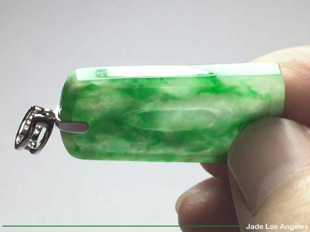 Bat Coin Emerald Floral Green Jadeite Jade Pendant 18K White Gold Diamond Bail