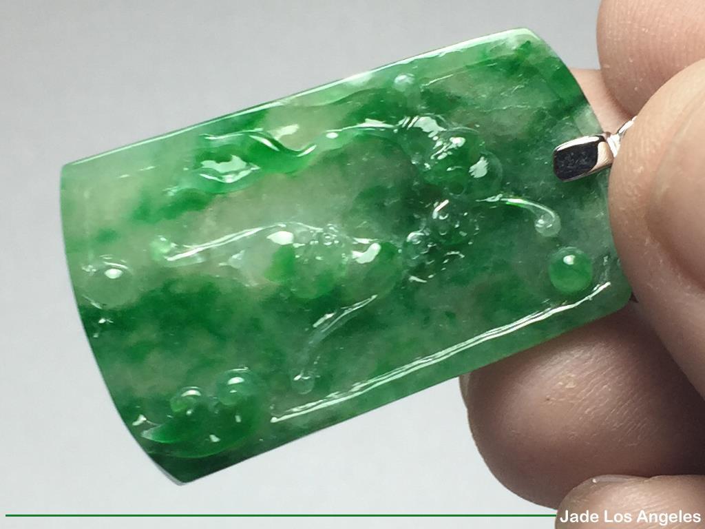 Type of Jadeite Jade: Old Type Rich Translucent Emerald Floral Green.