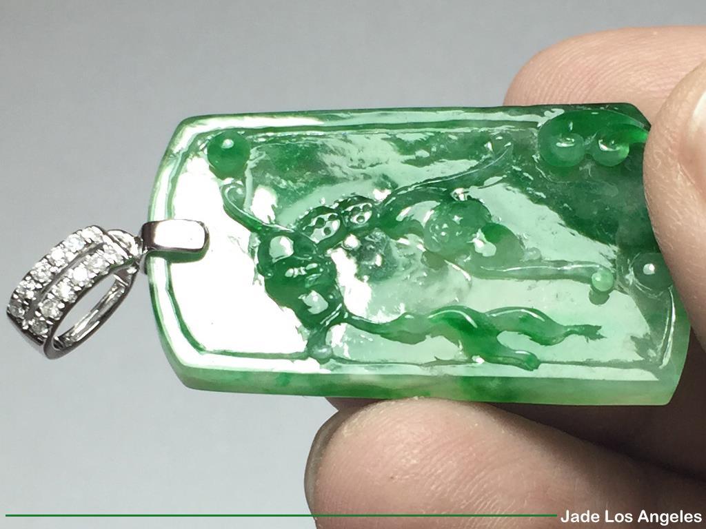 ***Successful buyer will receive one very gorgeous old school 2 bats floral coin old type rich translucent emerald floral green jadeite jade pendant with solid 18K white gold diamond bail, and a certificate (#GL109471) from Hong Kong in the auction. This item is 100% lifetime money back guarantee. Please buy with confidence. Thank you very much.***